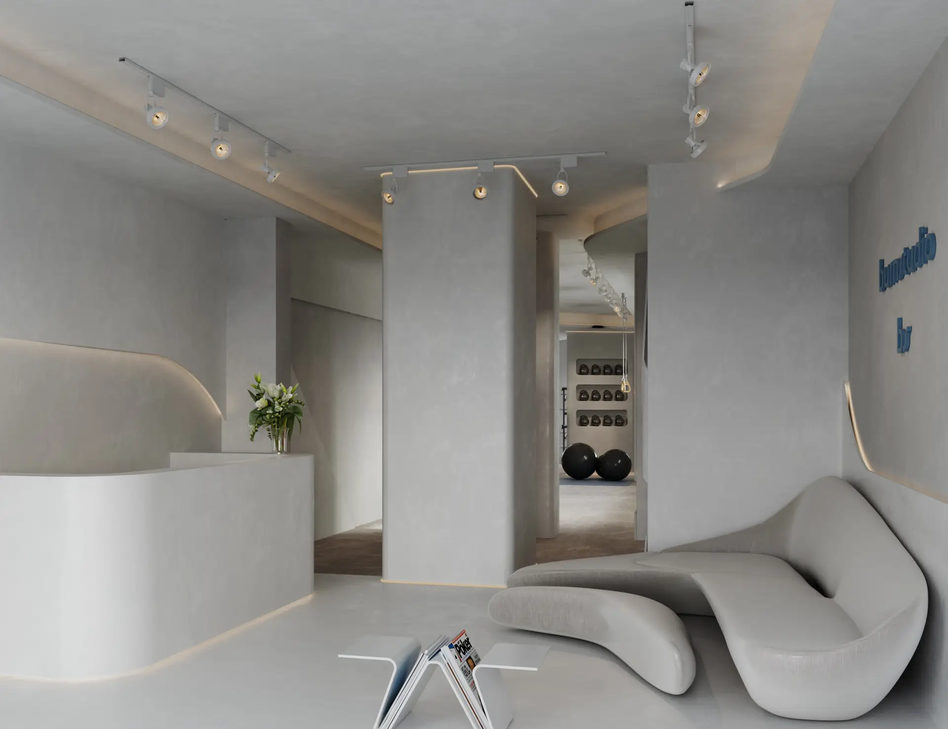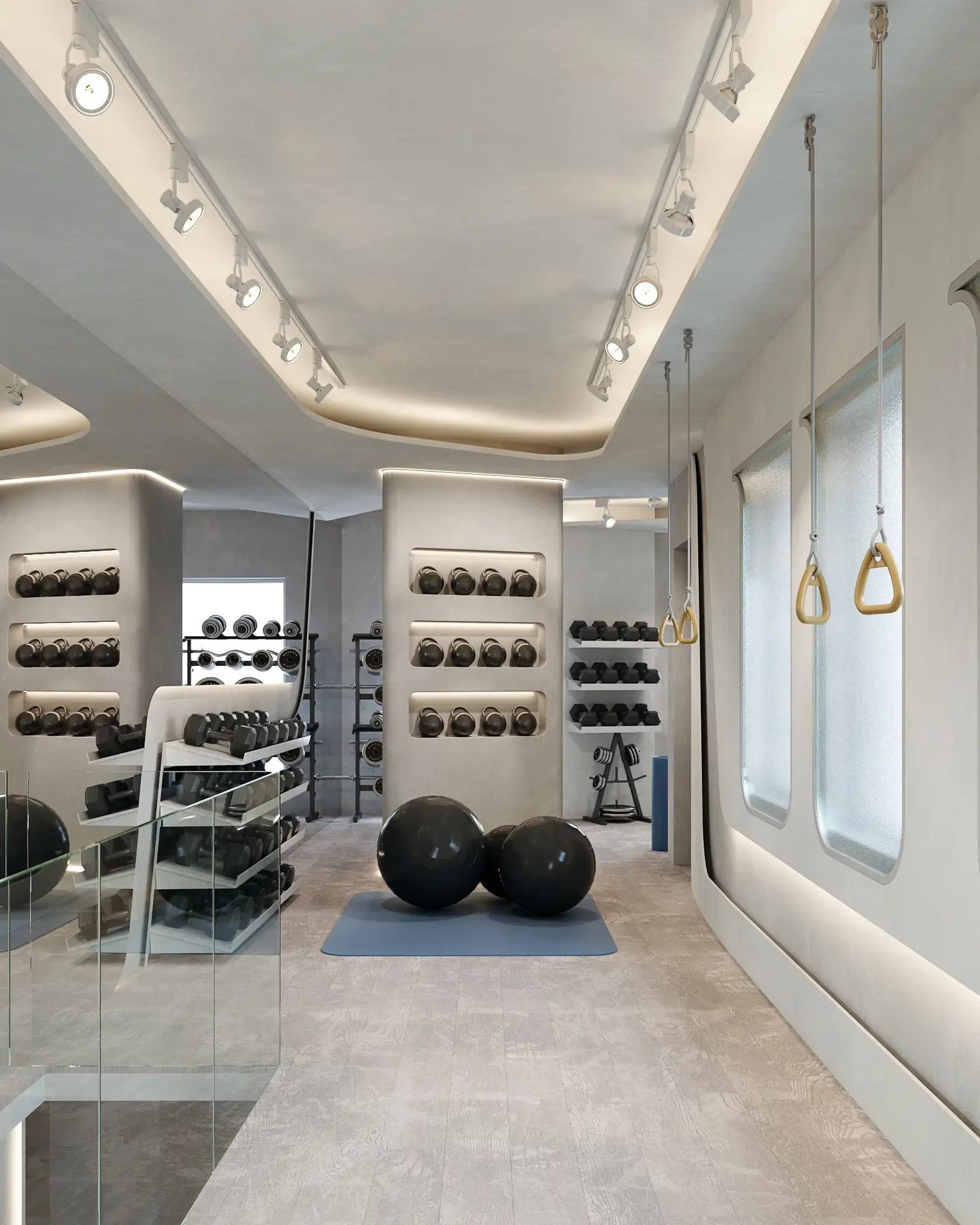 It is partially inspired by the London “Boutique gym” aesthetics, but in its adaptation we managed to customize that design, bringing a little bit of that national mix through the tradition of the stucco on its walls and the Mediterranean colour range, but always keeping its concept of lighting so urban and contemporary, typical of this typology.