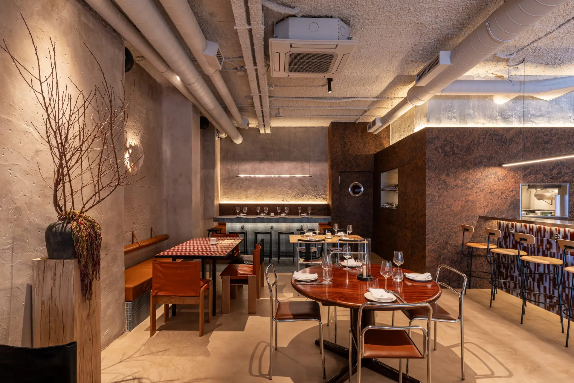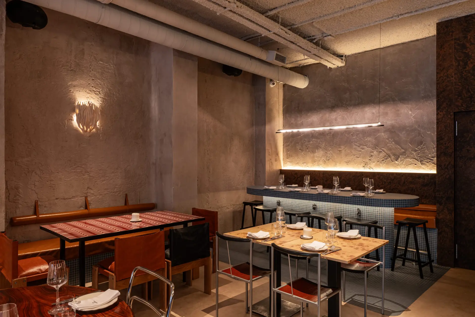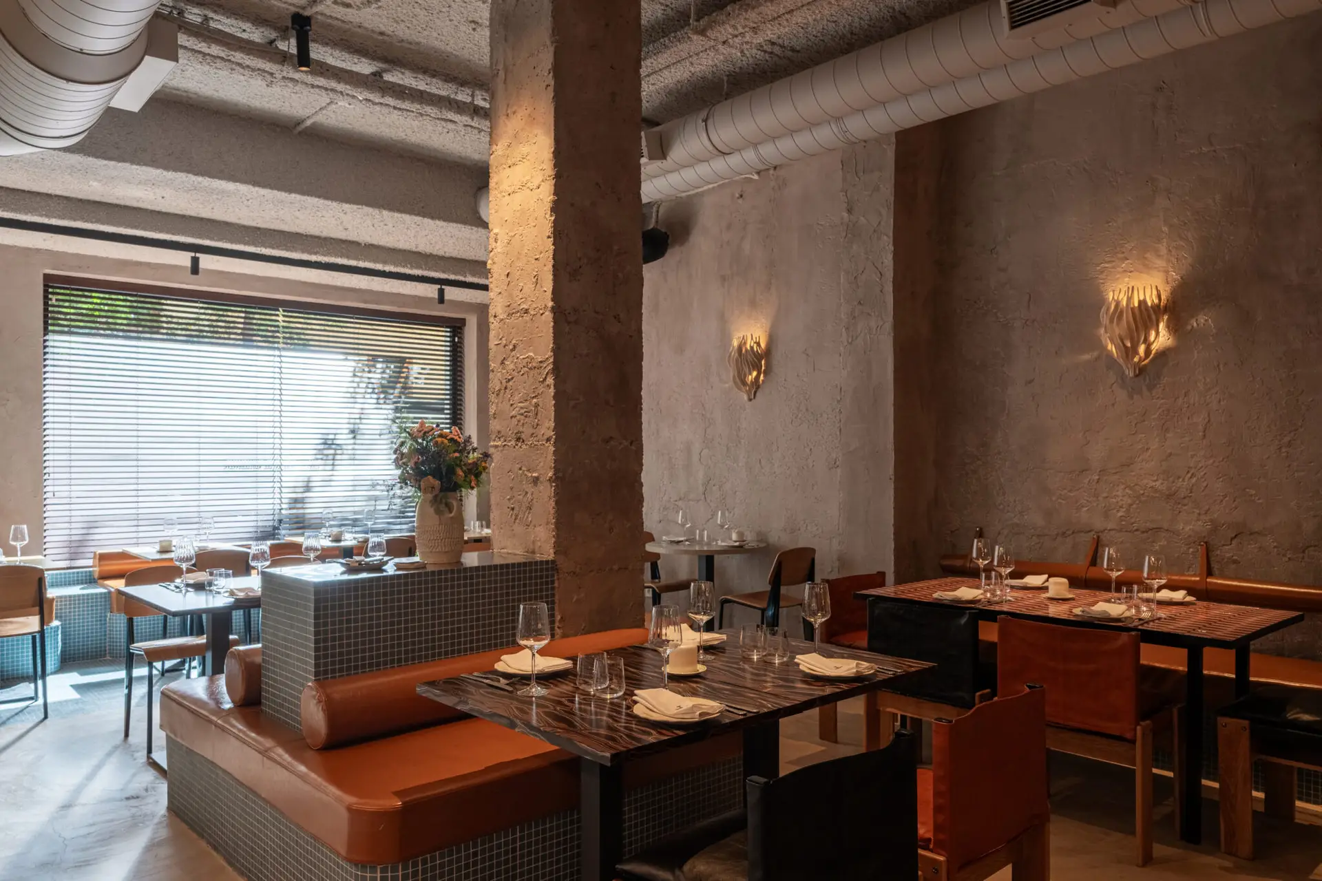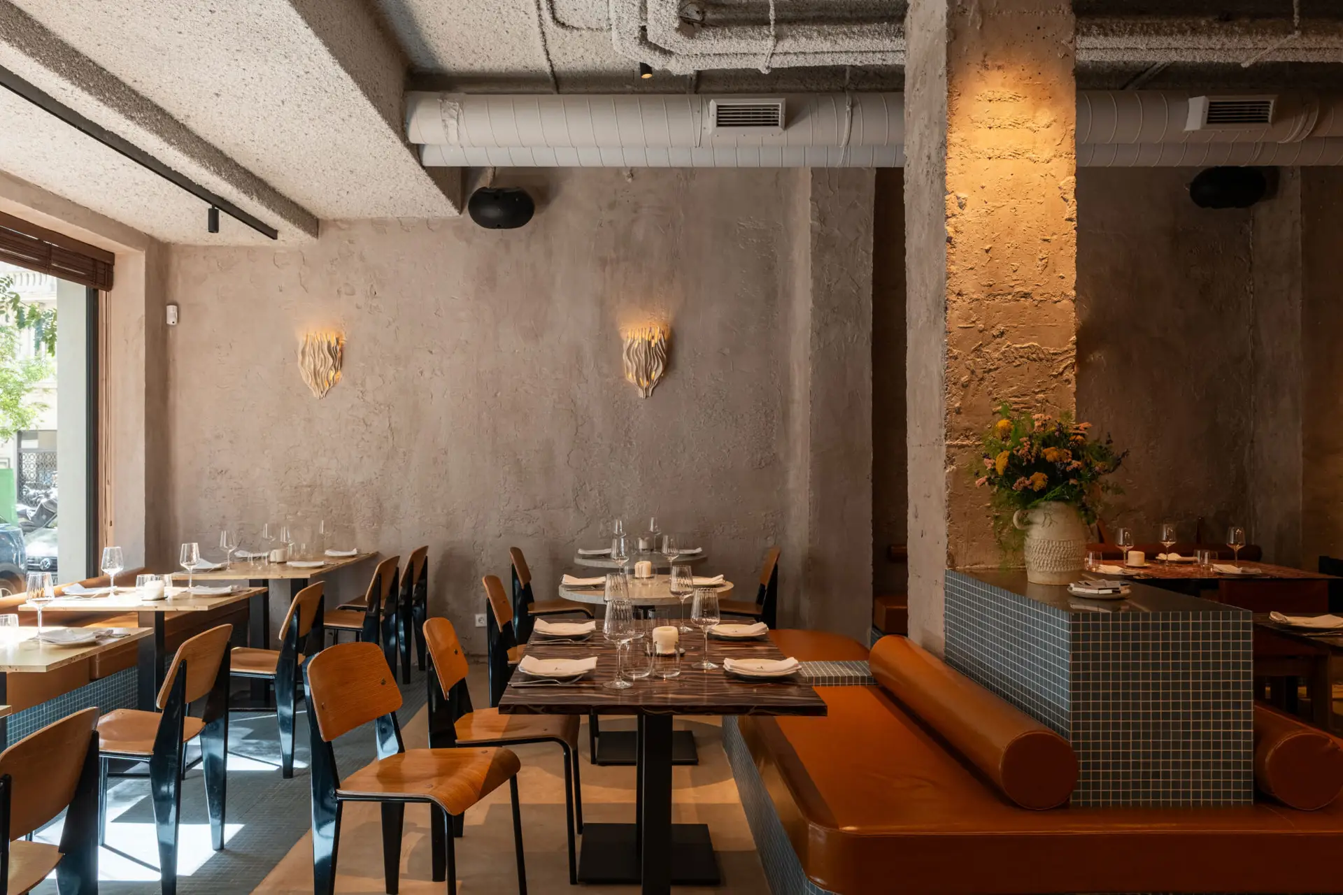 Norah is a restaurant in Madrid with a Mediterranean-inspired design that promotes a relaxed and contemporary atmosphere. The project combines natural materials, warm colors, and textures that reinforce a cozy, welcoming ambiance.