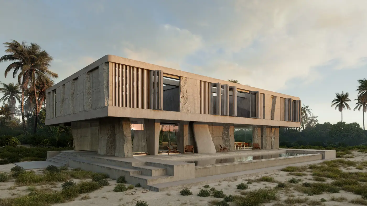 R HOUSE” is an ongoing project consisting of a boutique hotel in a protected beach reserve, where the architecture of the bungalows is inspired by the core of Caribbean marine life: the reef — the place where life is generated and, at the same time, a representation of the “home” of the ecosystem.