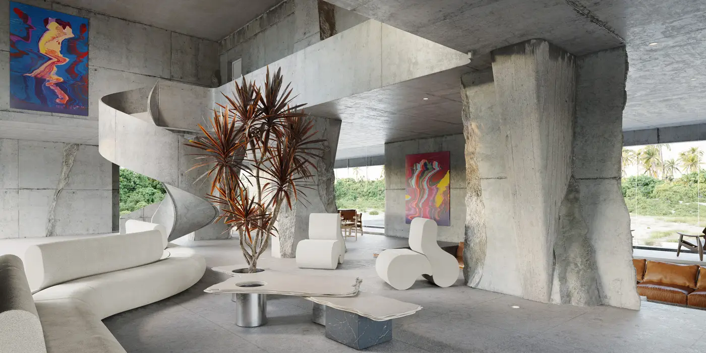 These concrete volumes are characterized by their open spaces and integration with lush vegetation, representing a fresh and innovative approach to architecture, while simultaneously paying homage to Brutalism, a movement widely developed in Cuba by great masters of the 1950s.